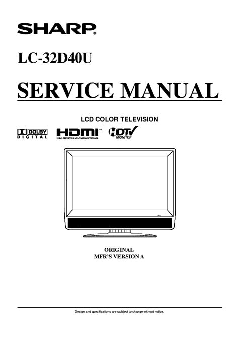 Currently you are looking regarding an Sharp Lc 32d40u Service Manual Repair Guide example of which we provide here within some kind of document formats like as PDF, Doc, Strength Point, and also images of which will make it simpler for you to create an Sharp Lc 32d40u Service Manual Repair Guide yourself. For a better look, you may open a few examples below. All the illustrations about Sharp Lc 32d40u Service Manual Repair Guide on this website, we get from many sources so you may create a better file of your own.